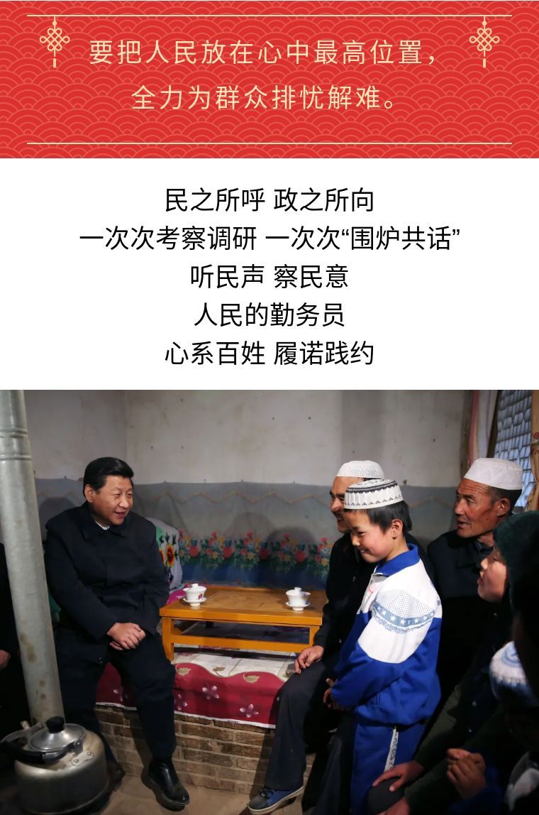 ↑2013年2月3日,習近平在甘肅臨夏回族自治州東鄉族自治縣布楞溝村村民馬麥志家,和一家人聊家常。