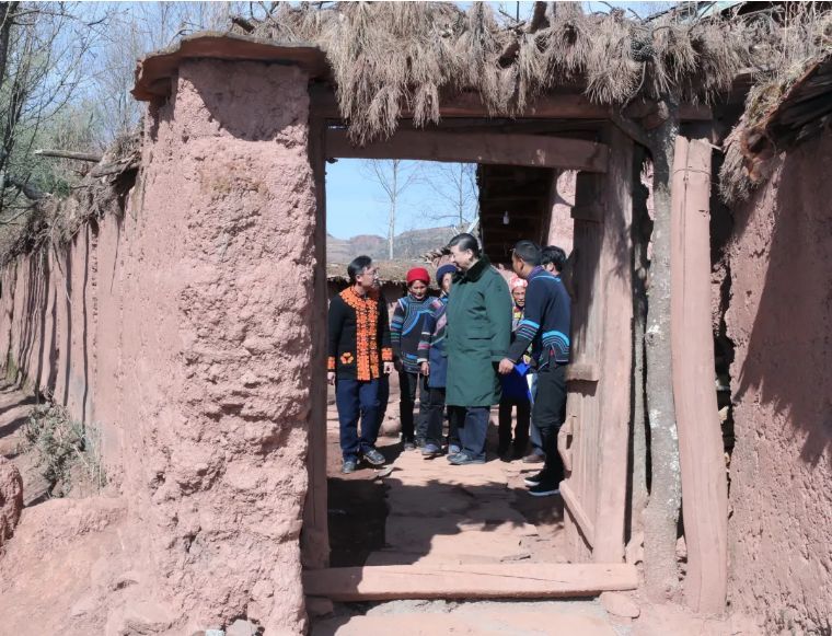 ↑2020年1月19日,習近平在云南騰沖市清水鄉三家村中寨司莫拉佤族村村民李發順家察看,了解居住環境。