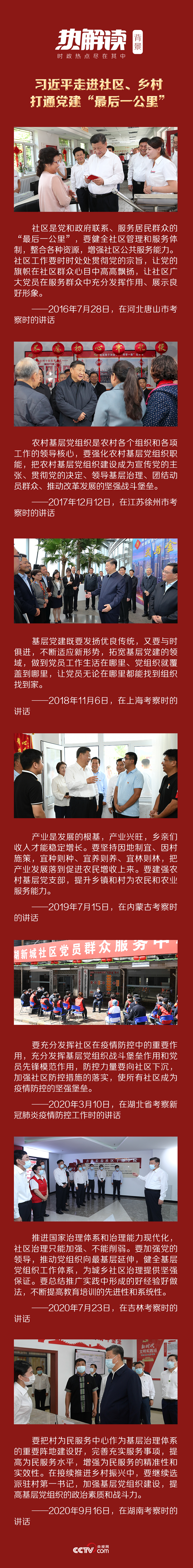 黨的十八大以來,從社區服務中心到黨員活動室,從社區干部學院到村服務中心……習近平總書記深入農村,走進社區,不斷通過打通黨建“最后一公里”,全面加強黨的建設。