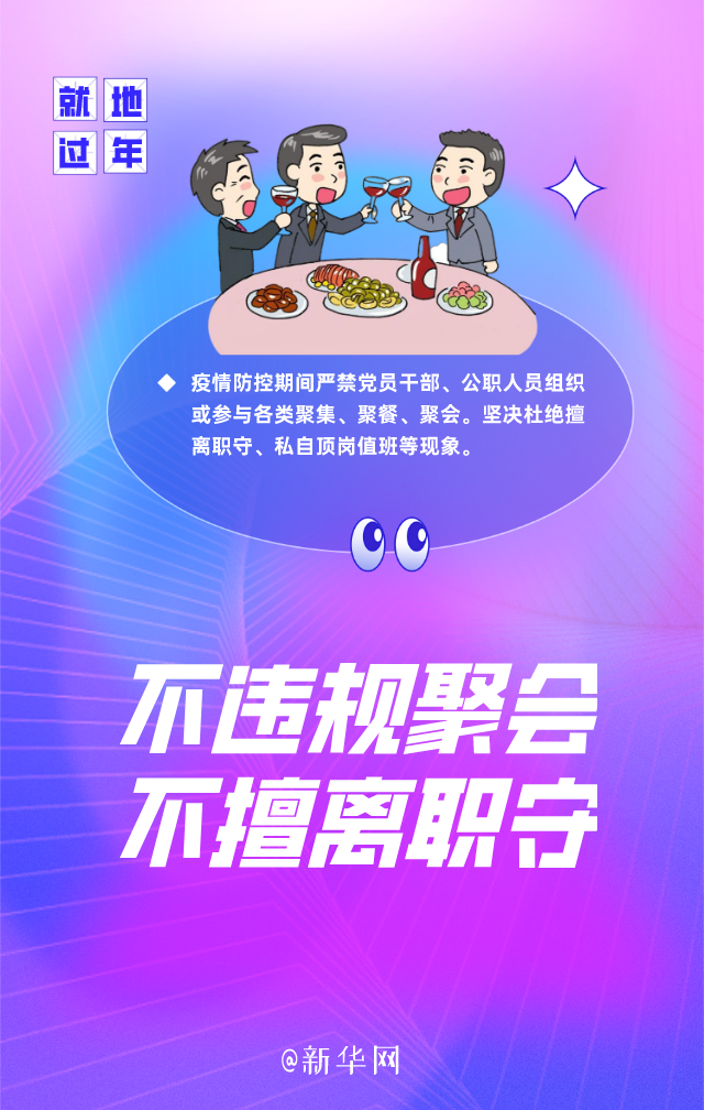 面對疫情防控的嚴峻形勢,今年多地提倡“就地過年”。作為黨員干部,該如何切實履行好示范帶頭作用?下面幾點提醒要記牢!