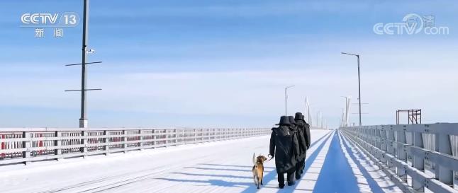 大年三十,孫志軍和同事們仍然要開展例行的巡邏踏查,從中俄國界到我方一側的橋頭是630米,巡邏一趟下來需要八九分鐘,這幾天溫度稍稍回升,但是空曠的界江上的溫度仍然是零下24度。
