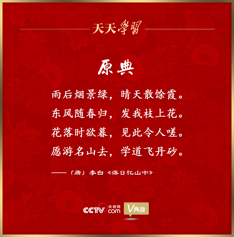 在2015年春節(jié)團拜會上的講話中,習(xí)近平總書記開場便引用了李白的“東風(fēng)隨春歸,發(fā)我枝上花”,為我們展現(xiàn)了一幅亮麗動人的春景圖,一股意氣風(fēng)發(fā)的豪邁之氣油然而生。春華今正濃,秋實自可期。“春天播種,秋天收獲。讓我們踏著春天的腳步,把人民對美好生活的向往作為奮斗目標(biāo),扎扎實實干好各項工作,共同創(chuàng)造祖國的美好未來。”在講話結(jié)尾,習(xí)近平總書記發(fā)出了動員令,宣示了黨中央團結(jié)帶領(lǐng)人民創(chuàng)造新輝煌的堅定信心,也表達了全體中華兒女奔向偉大夢想的共同期盼!