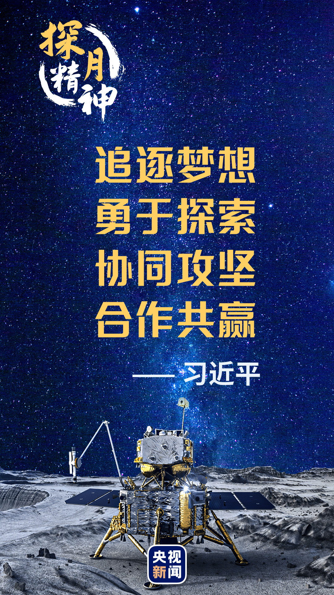 在推動實施好探月工程四期、開啟星際探測新征程的道路上,讓“探月精神”繼續引領我們,勇攀科技高峰,為實現航天夢、中國夢而奮發進取、建功立業。