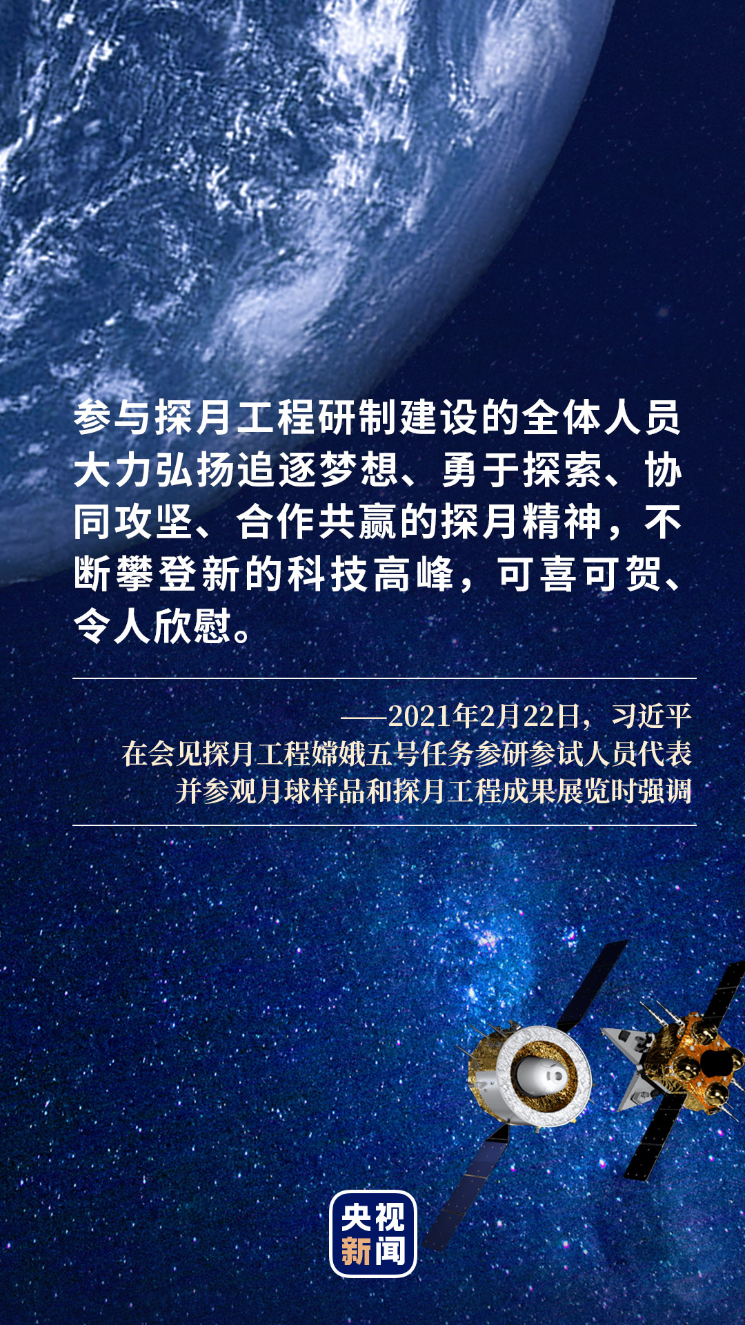 去年12月,在祝賀探月工程嫦娥五號任務取得圓滿成功的賀電中,習近平首次集中概括了“探月精神”——