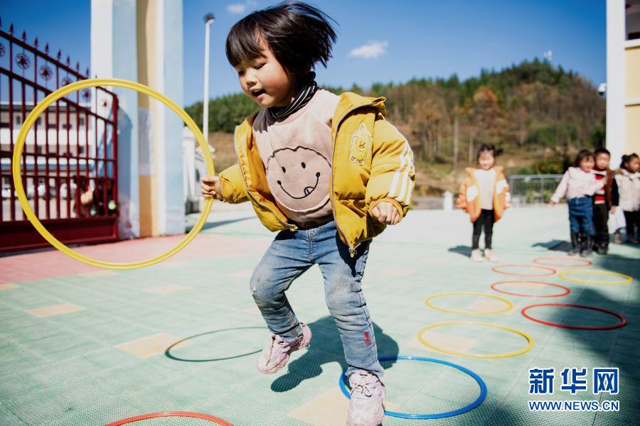 云南省鎮雄縣以古鎮巖洞腳村幼兒園的孩子在操場上玩耍(2020年11月11日攝)。新華社記者 王冠森 攝