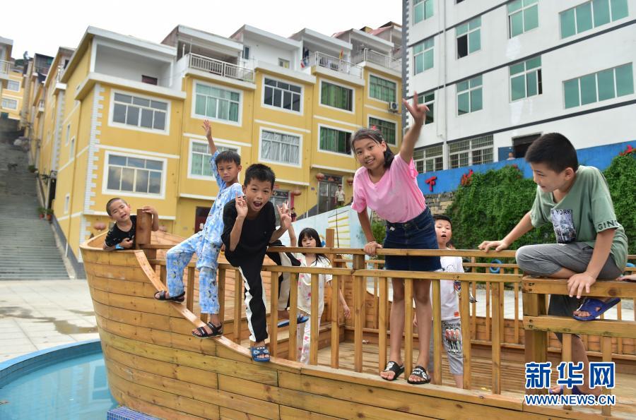 2019年8月22日,福建省福安市下岐村小朋友在下岐漁民廣場前玩耍。新華社記者 林善傳 攝