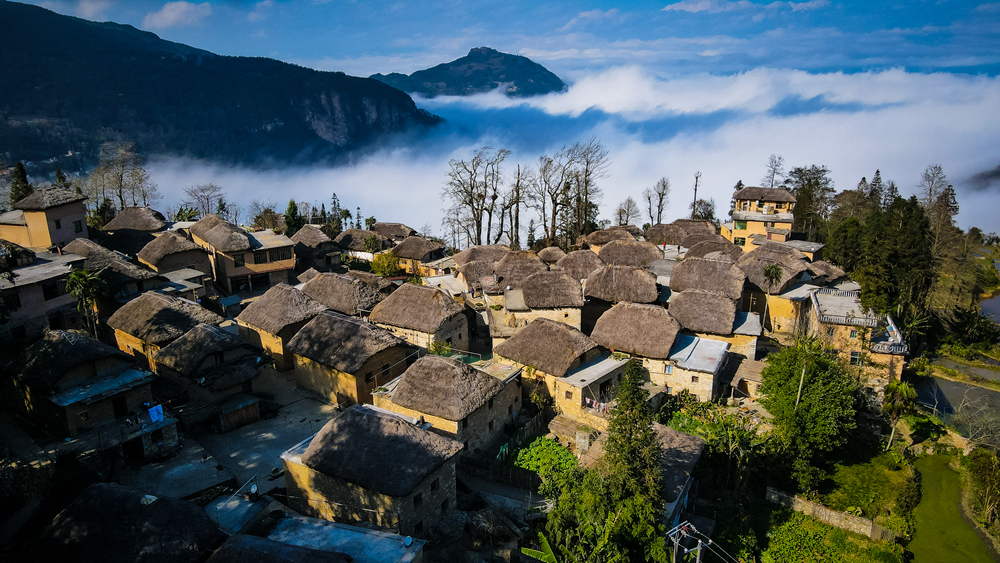 傳統(tǒng)村落承載著中華民族的歷史記憶,寄托著中華兒女的鄉(xiāng)愁。圖為2020年12月17日航拍的云南省元陽(yáng)縣哈尼族傳統(tǒng)村落阿者科村。 人民圖片 龍俊/攝