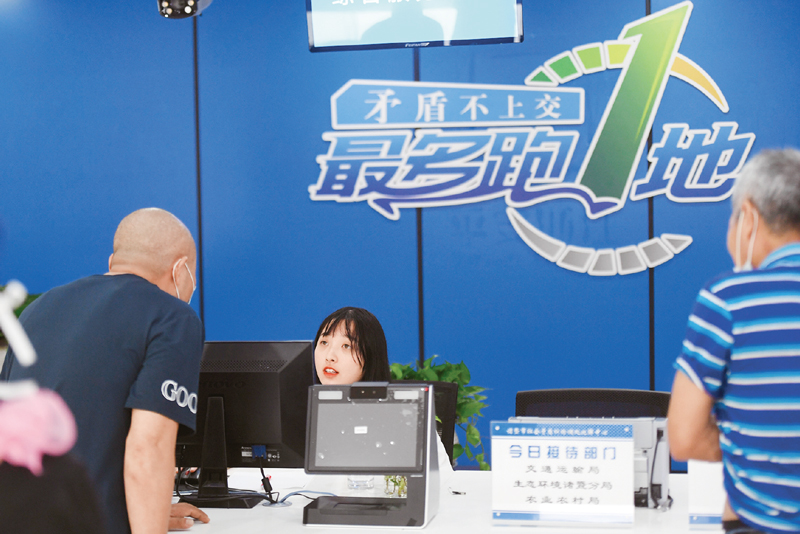 在“楓橋經驗”的發源地浙江省諸暨市,當地積極推動縣級社會矛盾糾紛調處化解中心建設,讓老百姓遇到問題能進中心“找個說法”。圖為2020年7月16日群眾在諸暨市社會矛盾糾紛調處化解中心綜合受理窗口咨詢。 新華社記者 黃宗治/攝