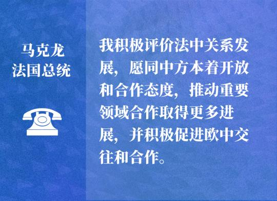 在同法國總統馬克龍的通話中,習近平主席指出,2020年我們5次通話,促進了中法關系良好發展。新的一年里,雙方要再接再厲,發揚拓荒牛精神,攜手推動中法關系得到更大發展。