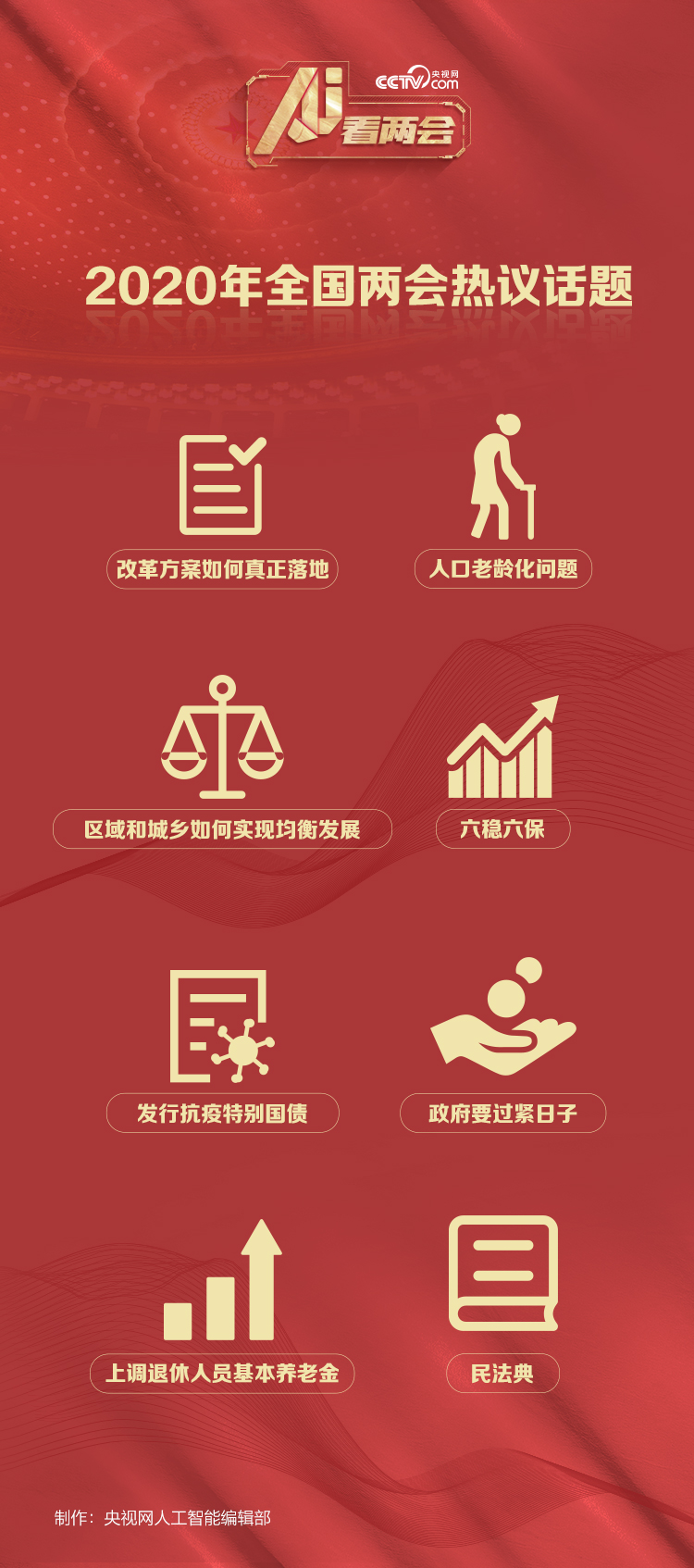 特殊之年的全國兩會,政府要過緊日子、發行抗疫特別國債、上調退休人員基本養老金、房住不炒、減稅降費等成為全網關注度較高的話題。此外,在全面建成小康社會的沖刺階段,“改革方案如何真正落地”“人口老齡化問題”“區域和城鄉如何實現均衡發展”“六穩六保”等成為2020年全國兩會廣大網民關注的民生熱點。