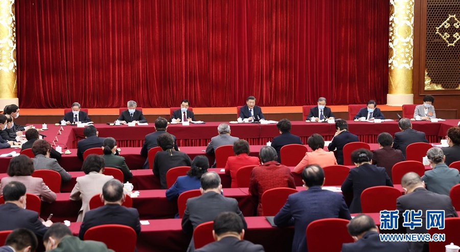 3月6日,中共中央總書記、國家主席、中央軍委主席習近平看望參加全國政協十三屆四次會議的醫藥衛生界、教育界委員,并參加聯組會,聽取意見和建議。中共中央政治局常委、全國政協主席汪洋參加看望和討論。新華社記者 黃敬文 攝
