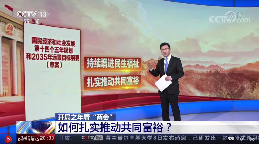 央視網消息:國務院編制的《綱要草案》提出,持續增進民生福祉,扎實推動共同富裕。特別提到要“堅持盡力而為、量力而行,加強普惠性、基礎性、兜底性民生建設,制定促進共同富裕行動綱要,讓發展成果更多更公平惠及全體人民。”那么,未來的五年我們該如何扎實推動共同富裕呢?