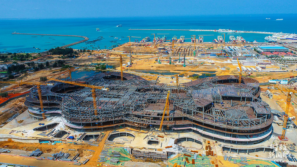 △2021年3月5日,建設中的海口國際免稅城項目,未來將成為海口新地標。