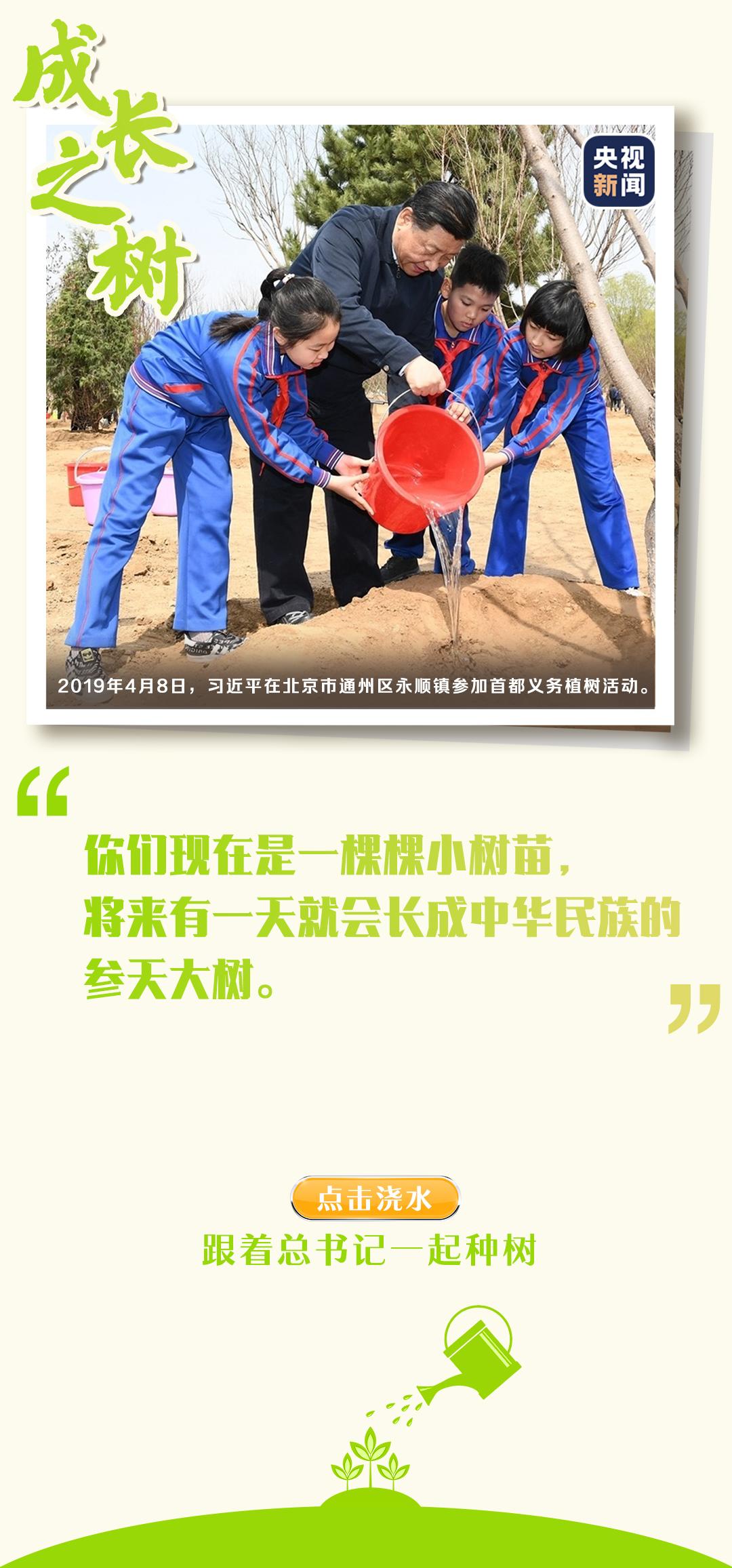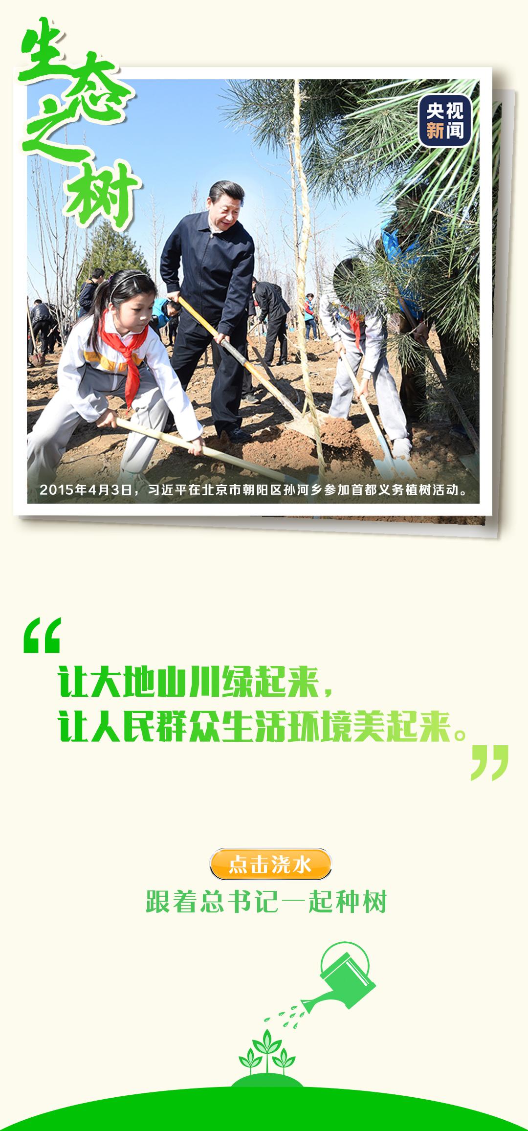 黨的十八大以來,習(xí)近平總書記每年都參加首都義務(wù)植樹活動。一鍬土,播種的是生機;一桶水,澆灌的是未來。