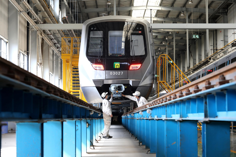 2月22日,在位于河北省石家莊市欒城區(qū)的中車齊車集團石家莊公司,工人在進行地鐵車輛調(diào)試。新華社發(fā)(梁子棟 攝)