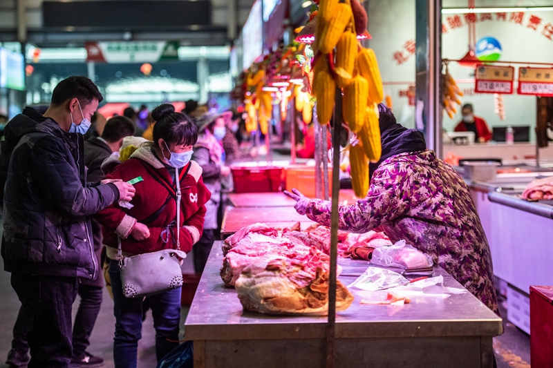 2月9日,市民在貴陽農(nóng)產(chǎn)品物流園買肉。新華社記者 陶亮 攝