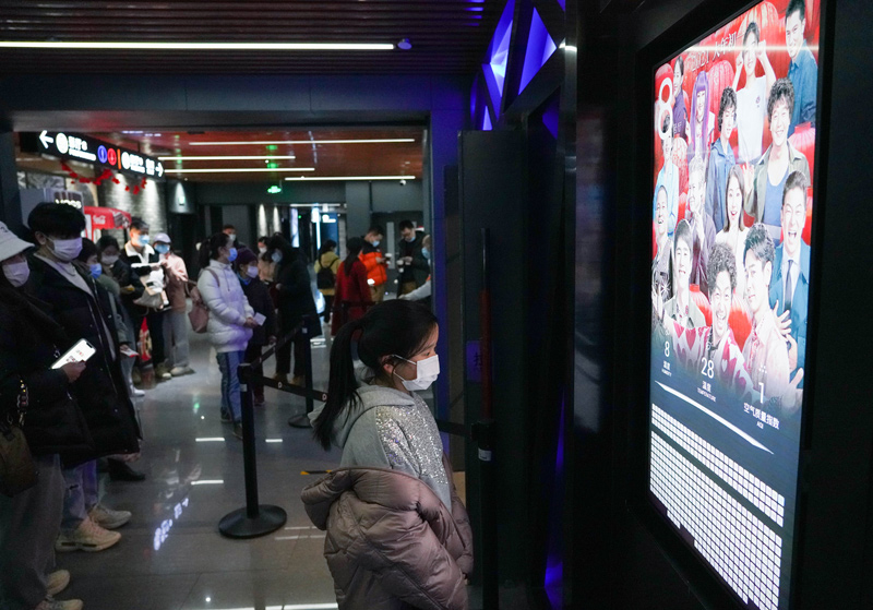 2月17日,觀眾在北京前門的保利國際影城影廳外等待進場。截至2月17日17時,2021年春節(jié)檔電影票房達75.44億元,繼2019年59.05億元后,再次刷新春節(jié)檔全國電影票房。同時創(chuàng)造了全球單一市場單日票房、全球單一市場周末票房等多項世界紀錄。新華社記者 陳鐘昊 攝