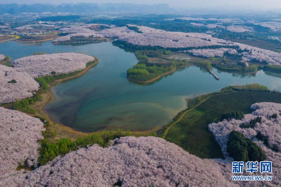 近日,貴州省貴安新區(qū)紅楓湖畔的櫻花觀光園內(nèi)萬畝櫻花競相盛開,吸引不少游客前來觀賞。