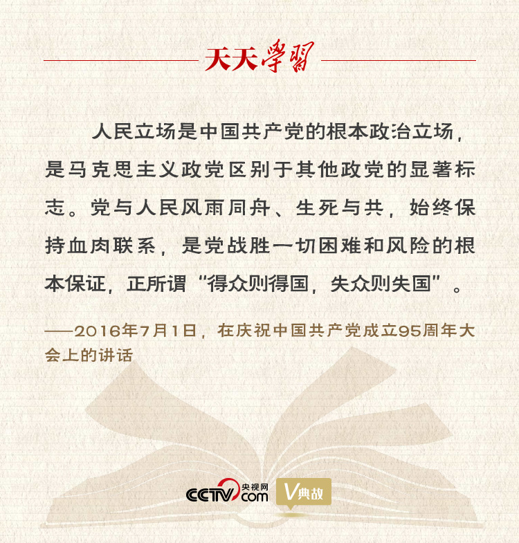 習近平總書記在“七一”重要講話中指出:“堅持不忘初心、繼續前進,就要堅信黨的根基在人民、黨的力量在人民,堅持一切為了人民、一切依靠人民,充分發揮廣大人民群眾積極性、主動性、創造性,不斷把為人民造福事業推向前進。” 他借“得眾則得國,失眾則失國”這句兩千多年前的古語,闡釋了“人民立場”這個中國共產黨的根本政治立場。
