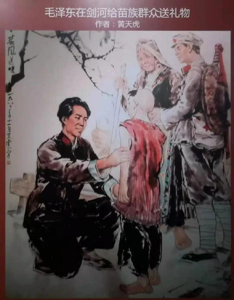 “當我等行經劍河縣附近之某村落時,見路邊有一老婦與一童子,身穿單衣,倒于路邊,氣息尚存……正詢問間,赤軍領袖毛澤東至,告以老婦所言。當時毛即時從身上脫下毛線衣一件及行李中取出被單一條,授予老婦,并命人給以白米一斗。老婦則連連道謝含笑而去。”
