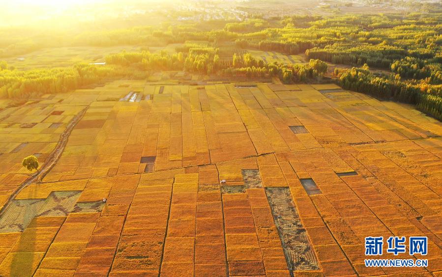 2020年10月18日在河北灤州市古城街道蔣莊村拍攝的稻田(無人機(jī)照片)。新華社記者 牟宇 攝