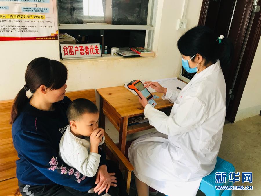 廣西樂業(yè)縣新化鎮(zhèn)百坭村群眾通過“村醫(yī)通”系統(tǒng)現(xiàn)場進(jìn)行醫(yī)療費(fèi)用結(jié)算(2020年2月12日攝)。新華社發(fā)(廣西壯族自治區(qū)醫(yī)療保障局供圖)