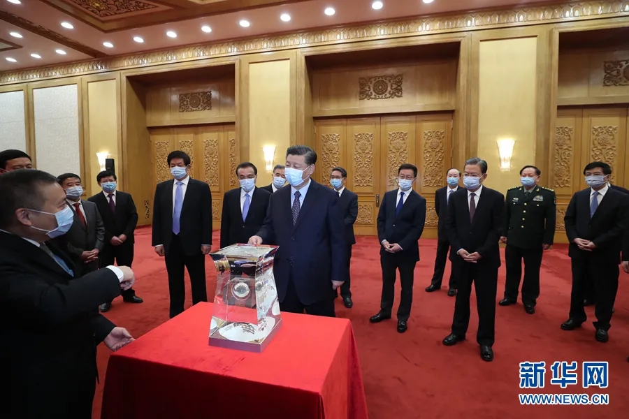 2021年2月22日,北京人民大會堂,習近平總書記親切會見探月工程嫦娥五號任務參研參試人員代表并參觀月球樣品和探月工程成果展覽。總書記深情寄語航天科技工作者:繼續發揮新型舉國體制優勢,加大自主創新工作力度,為增進人類福祉作出新的更大貢獻。作為我國復雜度最高、技術跨度最大的航天系統工程,嫦娥五號任務突出彰顯了中國自主創新實力,是中國科技自立自強的典范。