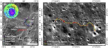 △“ 嫦娥四號”著陸區地質背景圖以及“ 玉兔二號”前13月晝巡視路線圖