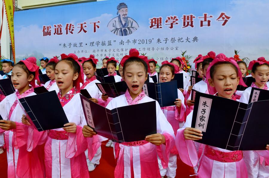 2019年10月18日,小學(xué)生在福建省建甌市舉行的朱子祭祀大典上誦讀《朱子家訓(xùn)》。新華社記者 張國俊 攝