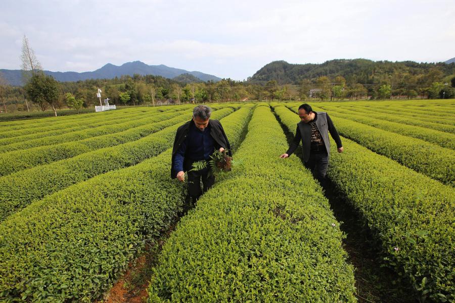 2019年3月26日,在福建省武夷山市星村鎮(zhèn),科技特派員與茶農(nóng)在生態(tài)茶園內(nèi)了解茶葉長(zhǎng)勢(shì)。新華社記者 安希雅 攝
