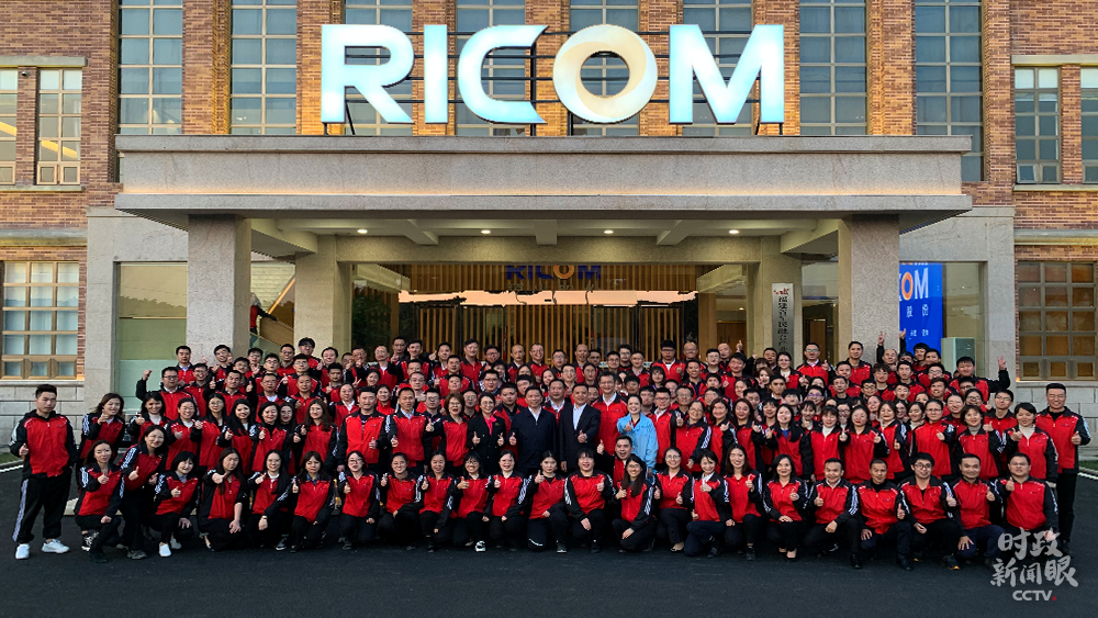 3月24日,總書記到福光公司考察。這是當天活動結束后,福光公司員工在大樓前合影留念。(總臺央視記者段德文拍攝)