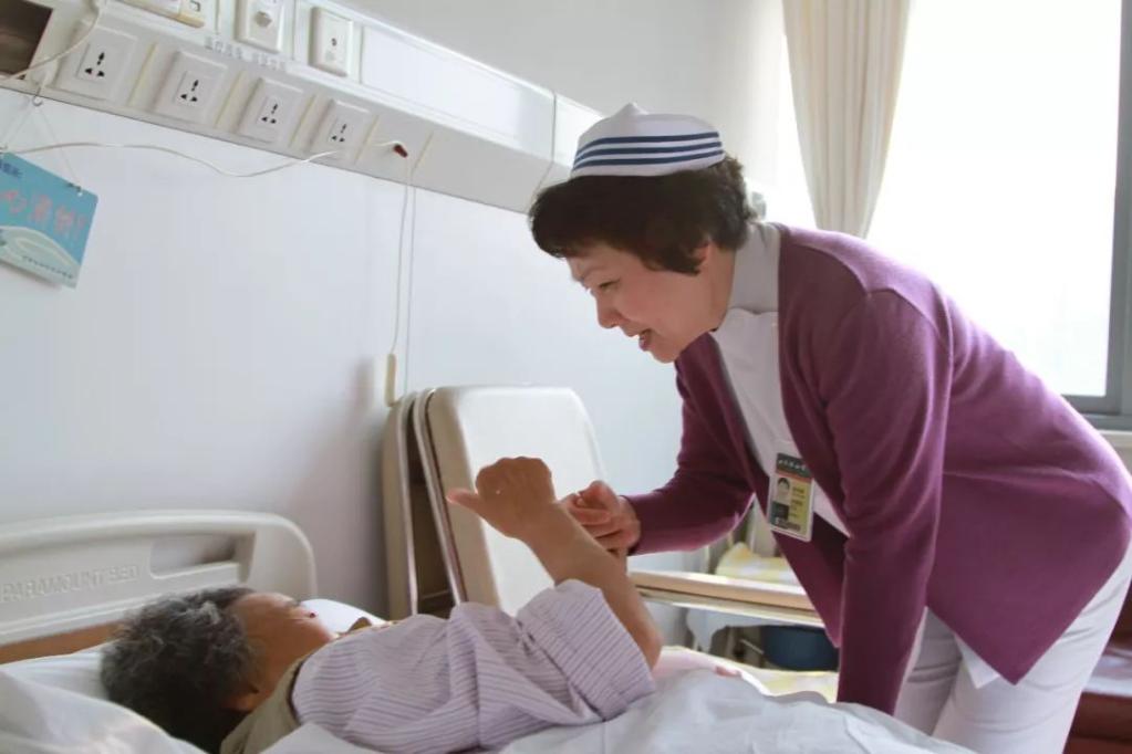 中華護理學會會長、南丁格爾獎獲得者吳欣娟在病房內與患者互動交流。新華社記者 胡喆 攝