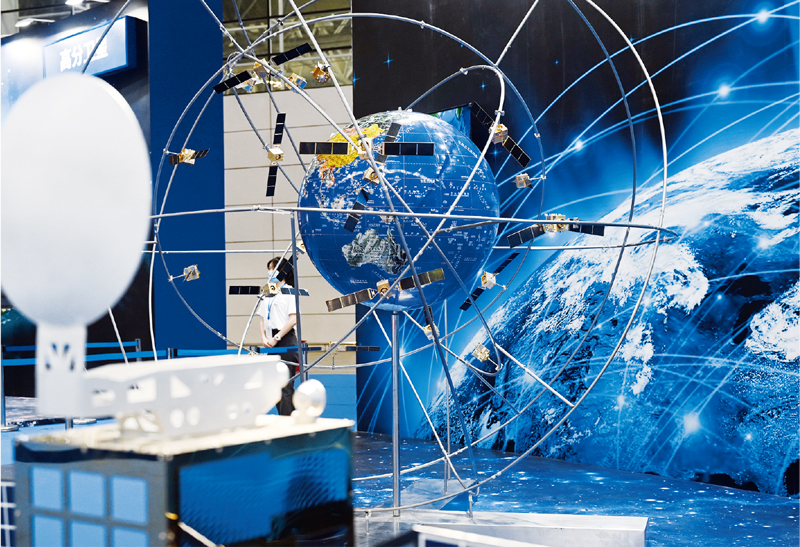 新中國成立以來,黨中央始終牢牢把握我國科技創新正確方向,在科技事業發展的每一個關鍵節點都作出了重大戰略部署。2020年6月,我國北斗導航衛星全球組網成功,標志著我國衛星導航系統達到國際先進水平,朝著服務全球的目標全速推進。2020年9月18日,“航天放飛中國夢”航天科普展暨中國航天成就展在福州舉行,圖為展出的北斗衛星導航系統模型。 新華社記者 林善傳/攝