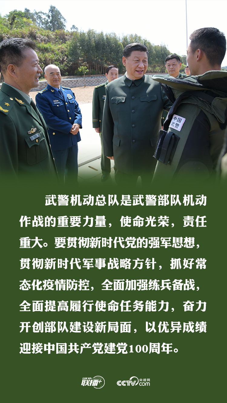 ●要堅持黨對軍隊絕對領導,加強黨的創新理論武裝,狠抓全面從嚴治黨、全面從嚴治軍,做好意識形態工作,確保部隊絕對忠誠、絕對純潔、絕對可靠,永遠做黨和人民的忠誠衛士。