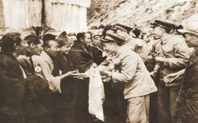 △進藏解放軍受到西藏人民的歡迎