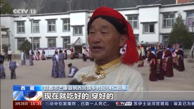 昌都市芒康縣納西民族鄉(xiāng)村民 澤仁旺堆:我們家來說也有翻天覆地的變化,現(xiàn)在的話就吃好的、穿好的,每天都是開開心心。在這樣的環(huán)境下,我們在這里生活,心里感到很高興,很快樂。