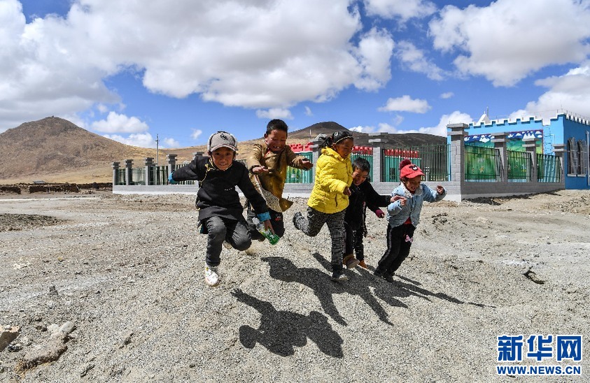 在我國海拔最高的行政鄉——西藏山南市浪卡子縣普瑪江塘鄉,小朋友們在新建成的幼兒園前玩耍(2020年4月16日攝)。新華社記者 晉美多吉 攝