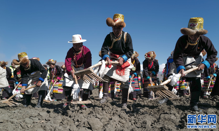 3月16日,西藏山南市乃東區克松社區居民在參加春耕儀式。新華社記者 孫瑞博 攝