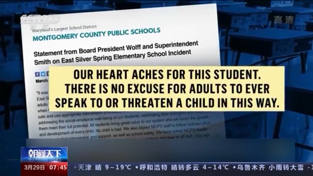 蒙哥馬利縣公立學(xué)校董事會(huì)主席和校長26日在一份聲明中說,“我們感到非常心痛,成年人沒有任何借口以這種方式對兒童說話或威脅兒童。”