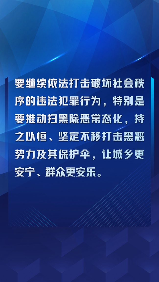 成就令人鼓舞,征途未有窮期。“十四五”規(guī)劃和2035年遠景目標綱要提出“推動掃黑除惡常態(tài)化”,這為根治黑惡頑疾提供了更加堅實的保障。要運用好寶貴經(jīng)驗,推進長效機制建設,打早打小、消除后患,常抓不懈、久久為功,堅決不讓任何黑惡勢力死灰復燃,徹底鏟除黑惡勢力滋生土壤。要發(fā)揮社會治安綜合治理優(yōu)勢,在深入實際、掌握實情上下功夫,在把握規(guī)律、精準督導上下功夫,在依靠群眾、發(fā)動群眾上下功夫,推動各部門各司其職、齊抓共管,提高依法治理、系統(tǒng)治理、源頭治理水平,努力建設更高水平的平安中國。