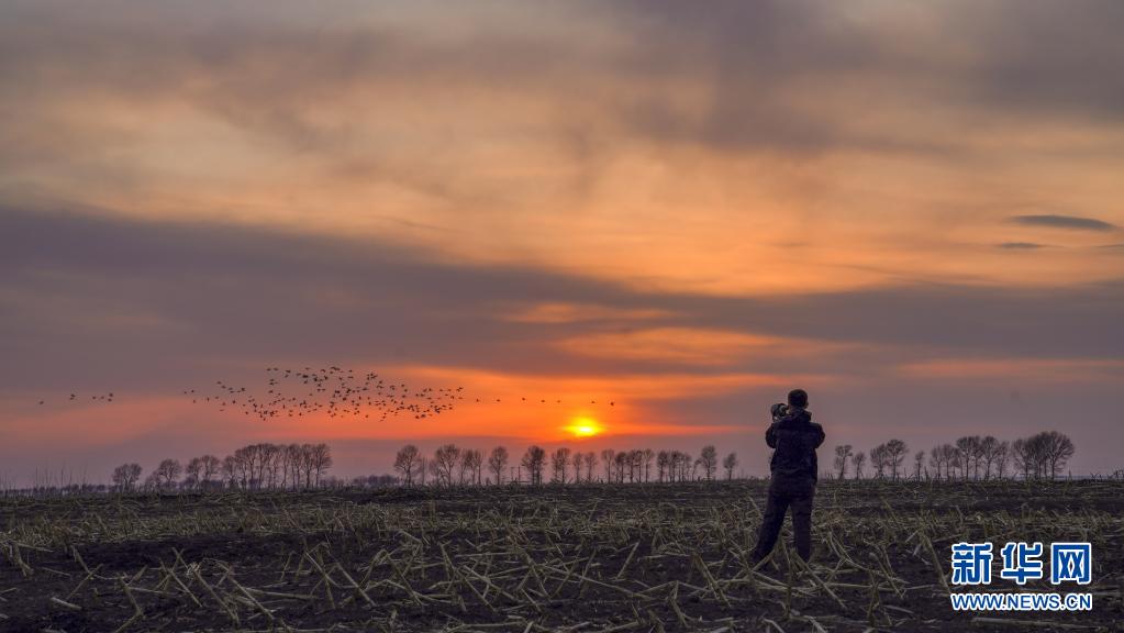 3月30日,在白城市鎮賚縣,護飛隊長潘晟昱拍攝候鳥。新華社記者 顏麟蘊 攝