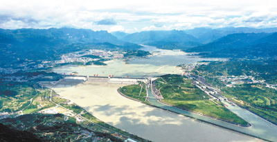 三峽大壩全景。