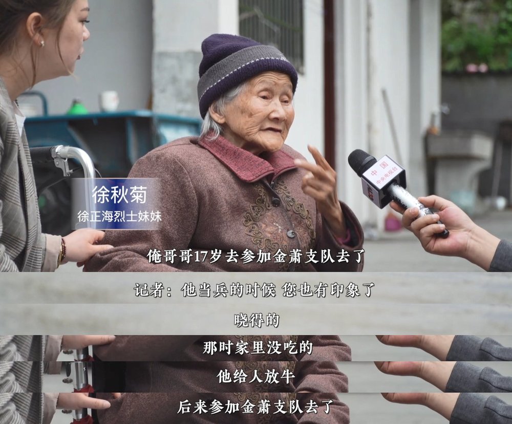 在浙江諸暨市馬劍鎮馬益村中坑,記者見到了徐正海的三妹徐秋菊。老人今年85歲,患有阿爾茨海默病,以前很多事她都不記得了,但提起自己的哥哥,她依然記憶猶新。