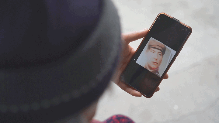 徐秋菊年事已高,行動不太方便。孫女徐耐勞就把烈士陵園英烈墻上徐正海的照片翻拍下來給老人看,愛心人士還免費制作了動態圖,這讓徐秋菊老人特別開心。