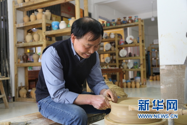 花茂制陶手藝第四代傳承人母先才制作陶藝擺件。新華網(wǎng) 蔡連素 攝