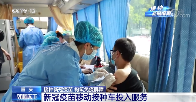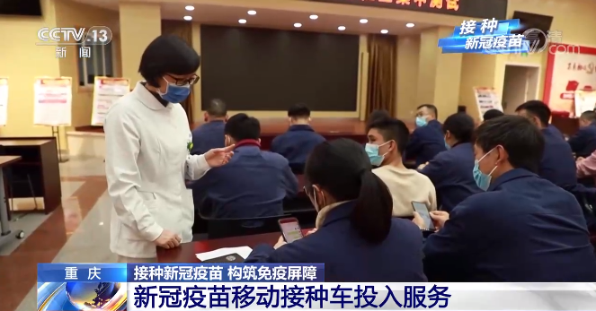 4月9日,在位于重慶璧山區(qū)的一家企業(yè)內(nèi),一輛“新冠疫苗移動接種車”停在廣場上,企業(yè)員工在醫(yī)務(wù)人員的指引下有序排起長隊(duì),依次進(jìn)入車內(nèi)接種。