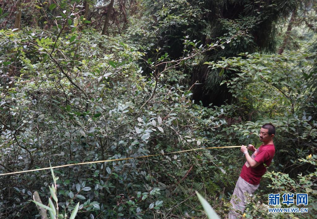 蔣維明在丈量茶樹(資料照片)。新華社發