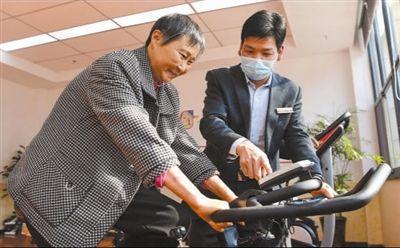 安徽省肥西縣上派鎮(zhèn)某居家養(yǎng)老服務(wù)中心,工作人員指導(dǎo)老年居民鍛煉身體。徐 勇攝(影像中國)