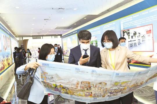 與會嘉賓認真觀展,一件件實物、一幅幅圖片、一組組數據,引得許多人紛紛豎起大拇指點贊。