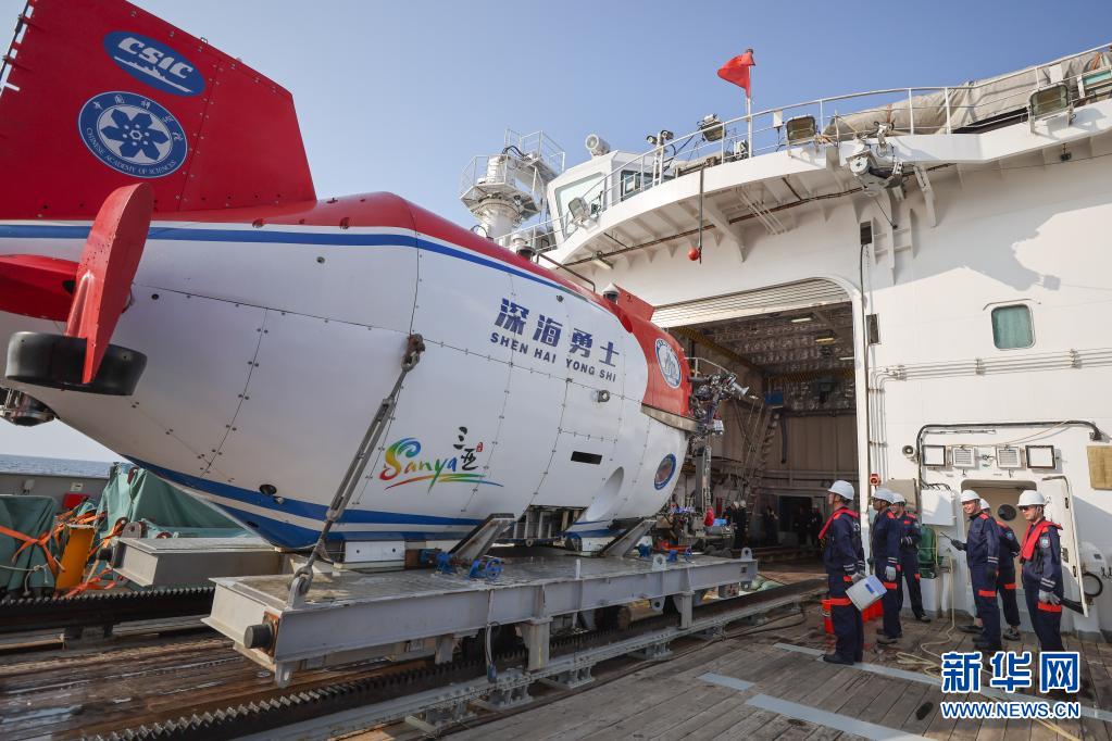 這是載人潛水器“深海勇士”號回到“探索二號”母船上。